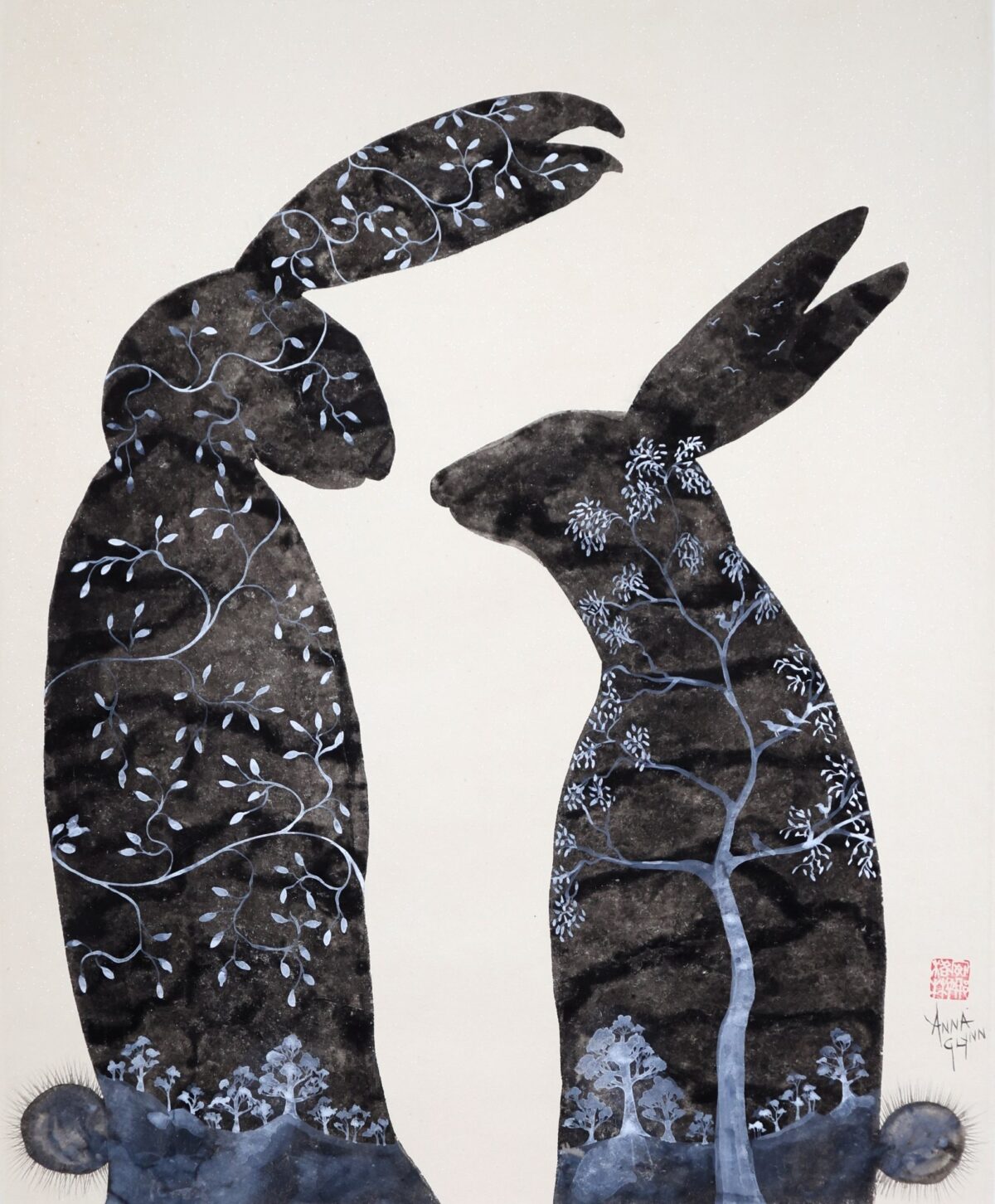 Contained within the rabbit lovers silhouette is another world…forests and hills unrolling