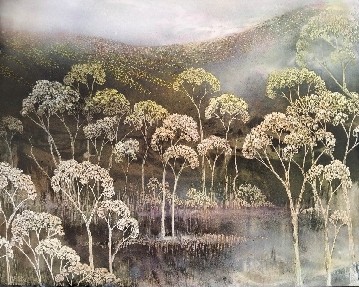 ink, acrylic, soldering iron on board 30 x 40 cm