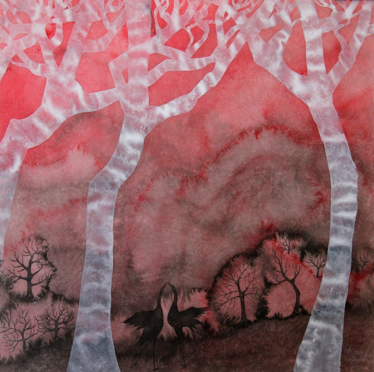 A meeting in a forest beneath diaphanous tress, a conversation, a dance?