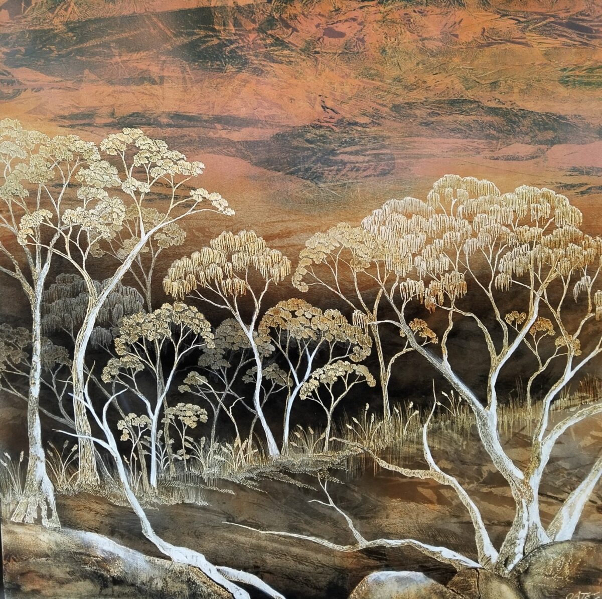 ink, acrylic, soldering iron on board 60 x 60 cm