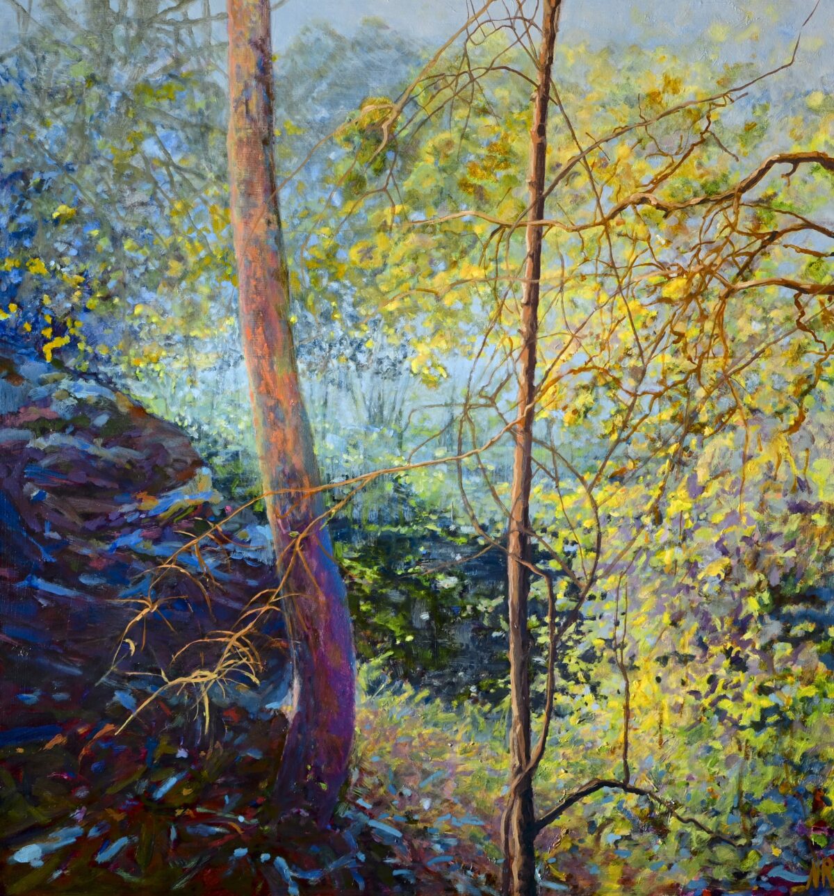 oil on birch panel framed in shadowline Tasmanian oak 70 x 65 cm